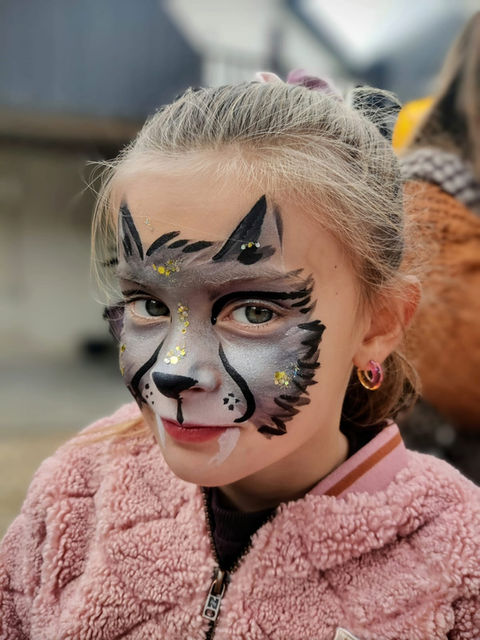 Ik kan bij drukte binnen enkele minuten indrukwekkende schminkontwerpen creëren. Zo komt iedereen snel aan de beurt.